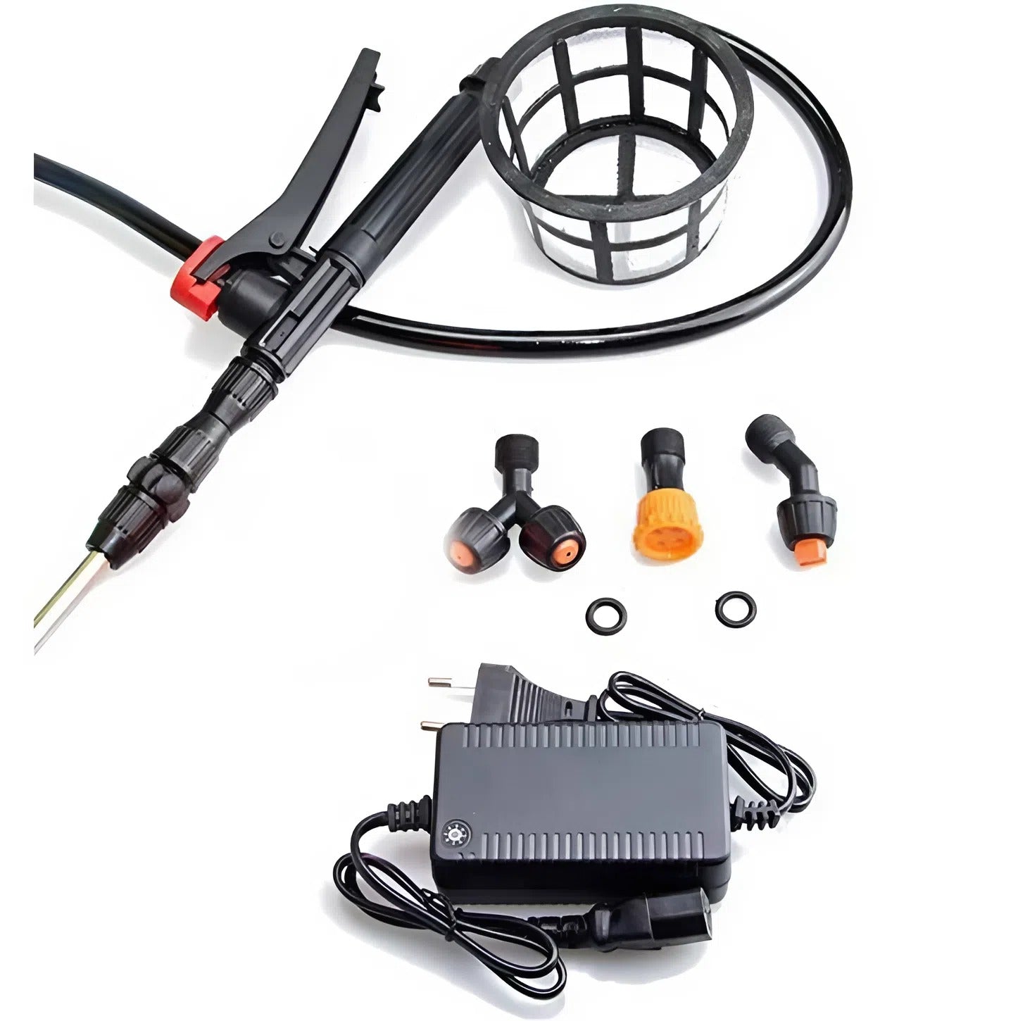 Műanyag, akkus háti permetező 16 literes tartállyal, és állítható teljesítménnyel Egyszerű összeszerelés, könnyű használat. 3 különböző permetező fejjel szállítva. Kiválóan alkalmas kertek, gyümölcsösök gondozására, permetezésére. Egy feltöltéssel akár 4 óra folyamatos munkára is képes. Beépített akkumulátora a csomagban található hálózati adapter segítségével tölthető.