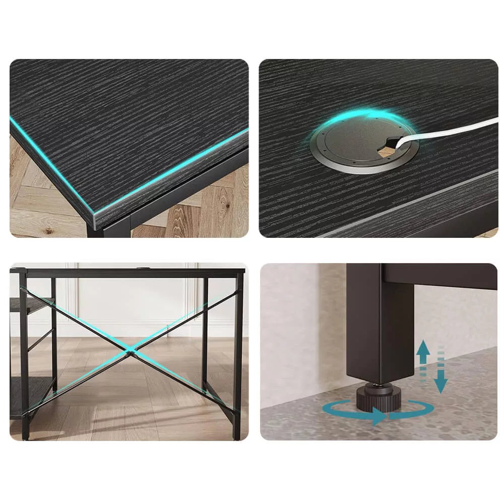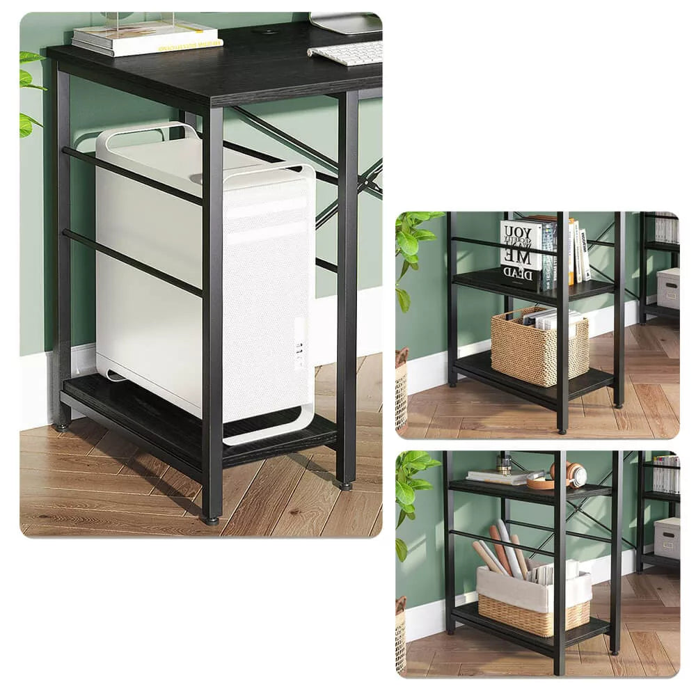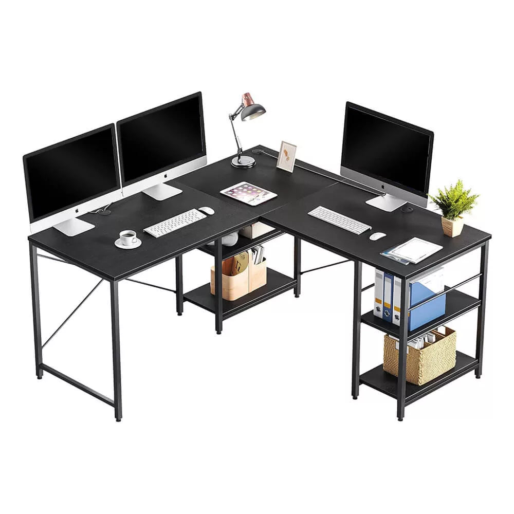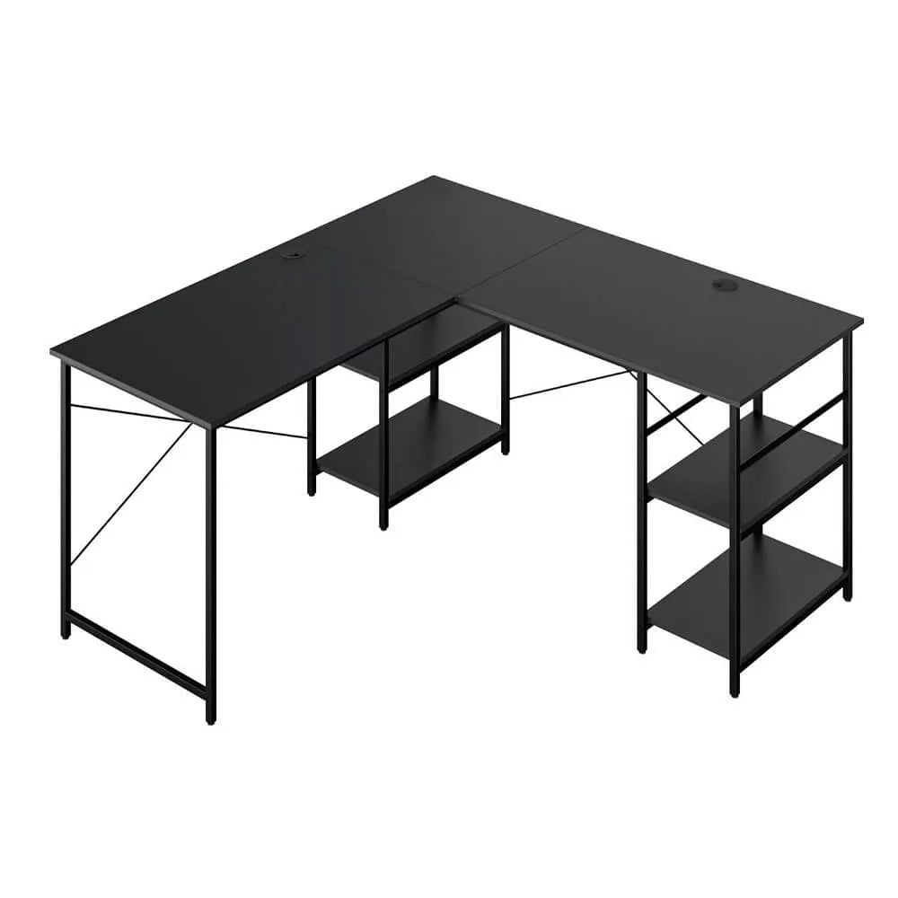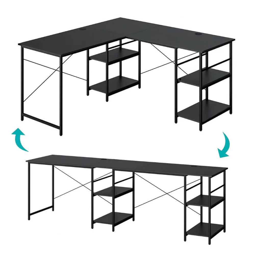Átalakítható L alakú íróasztal polcokkal, fekete