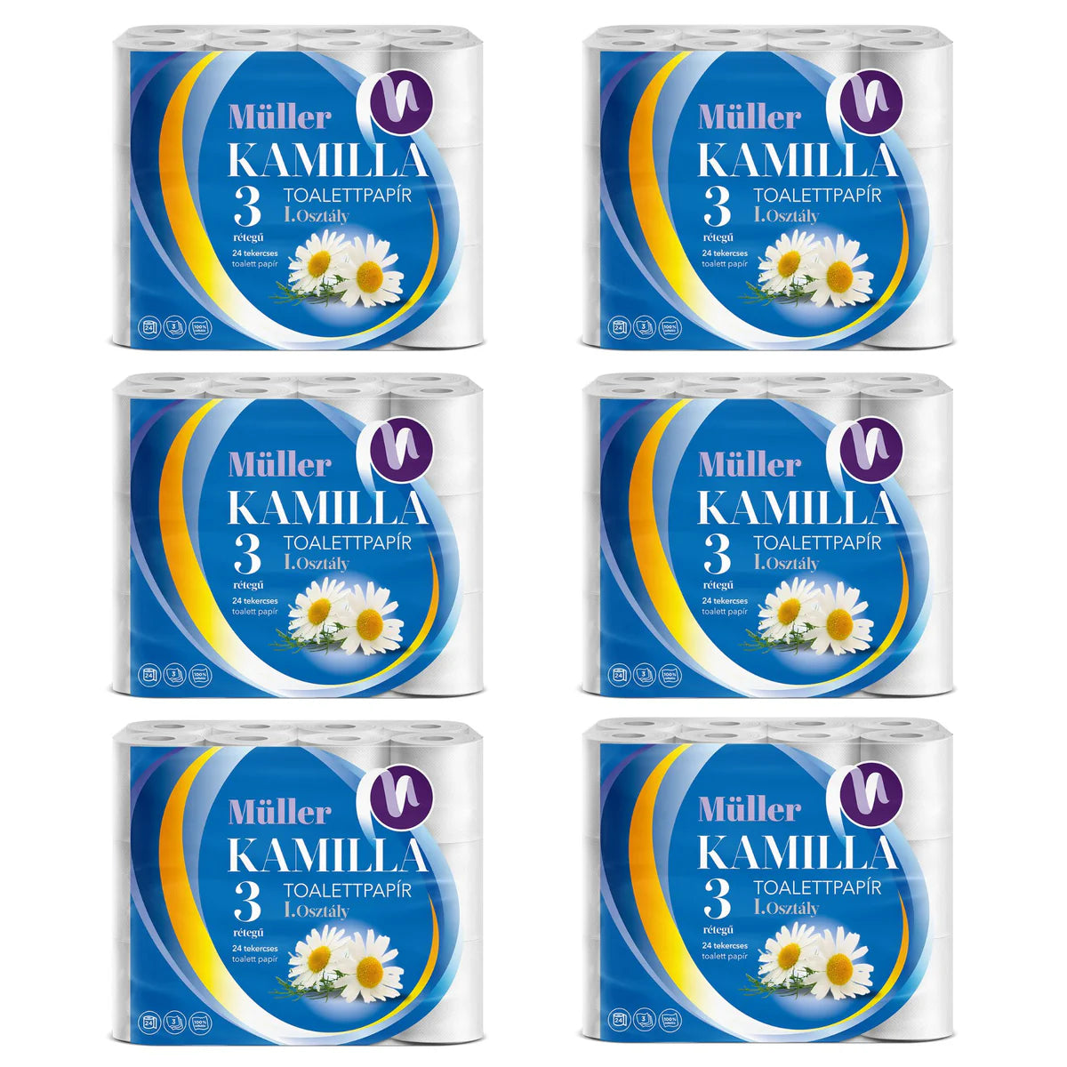 Csomag:6X Müller Kamilla 3 Rétegű Wc Papír XXL 24 Tekercs