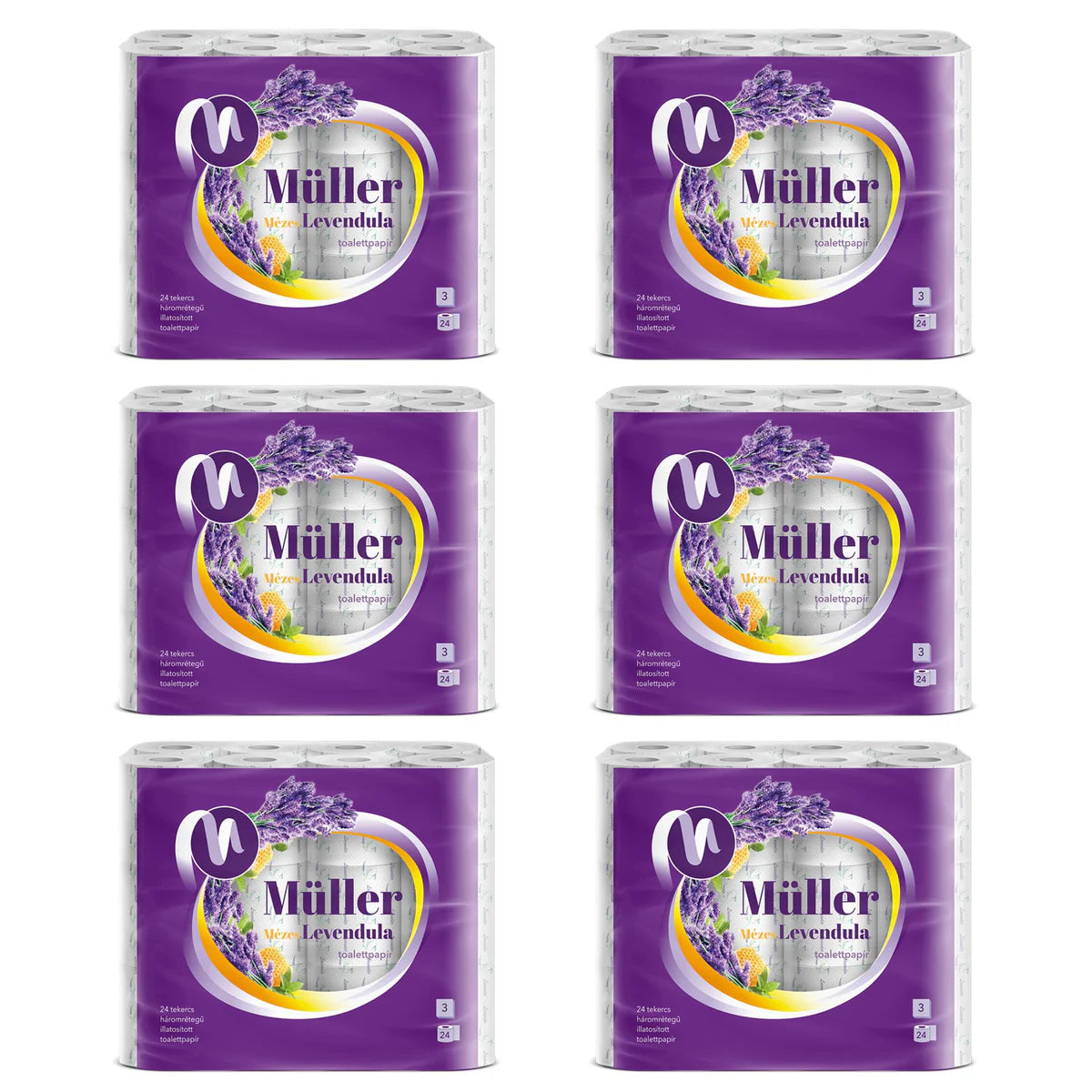 Csomag:6x Müller Levendula 3 Rétegű Wc Papír XXL 24 Tekercs