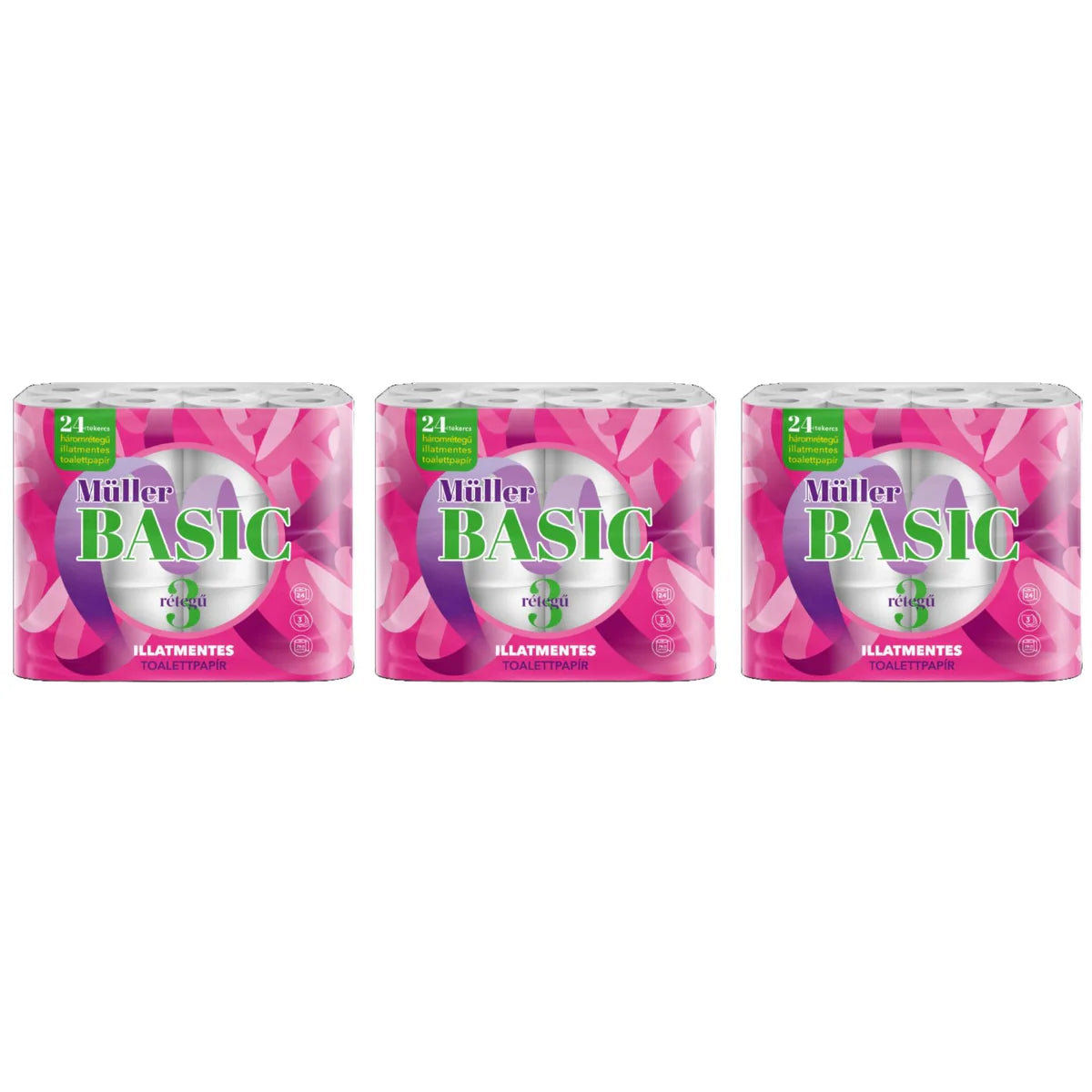 Müller Basic 3 rétegű illatmentes toalettpapír 24 tekercs