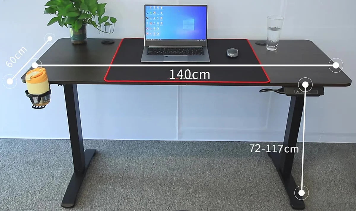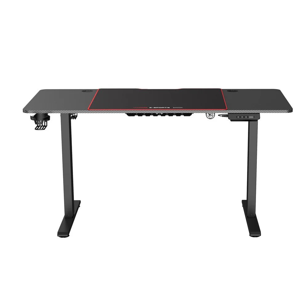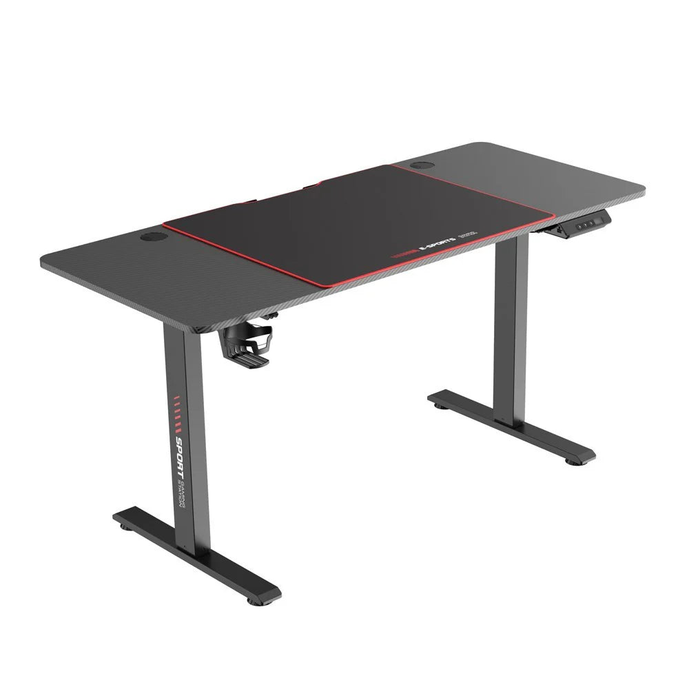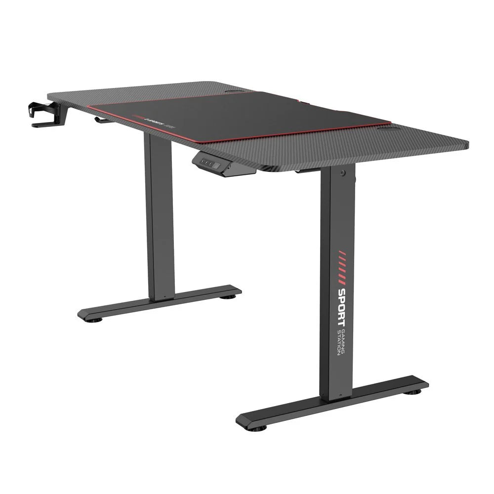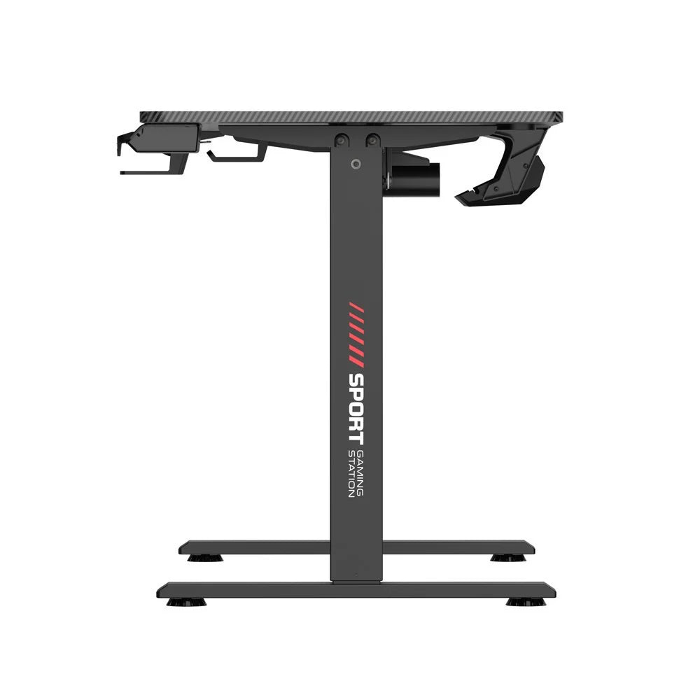 Gamer íróasztal elektromosan állítható magassággal (72-117 cm-ig), pohártartóval illetve fejhallgató tartóval. Minőségi alumínium lábbal, 80kg-ig terhelhető. A hátoldalán megtalálható két kábelrendező is. Magassága elektromosan szabályozható, így lehetőség van a legkényelmesebb és az egészséges testtartást leginkább támogató magasságot beállítani rajta. Ülve és állva is használhatjuk ezt a gamer asztalt, melynek magasságát az elektromos meghajtásnak köszönhetően néhány gombnyomással bármikor megváltoztathatjuk annak megfelelően, hogy éppen milyen célra szeretnénk használni. A csomagban megtalálható egy 70x60cm egérpad is!