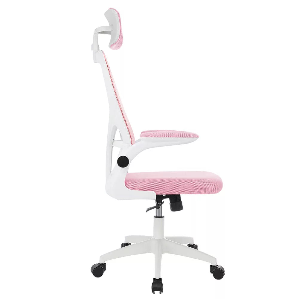 Ergonomikus irodai szék deréktámasszal, fejtámlával, rózsaszín