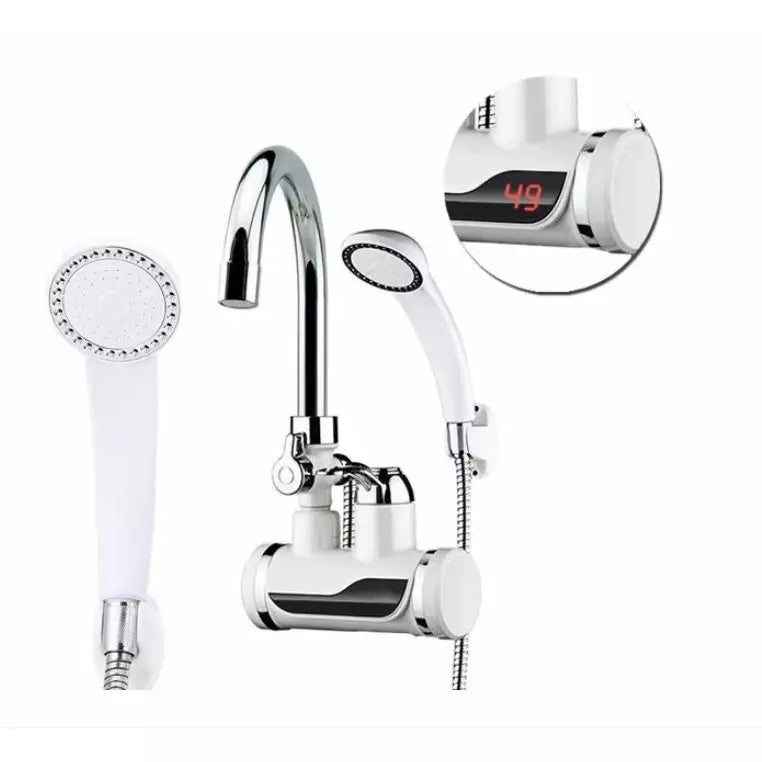 Falra szerelhető átfolyós vízmelegítő csaptelep, zuhanyfejjel, 3000W