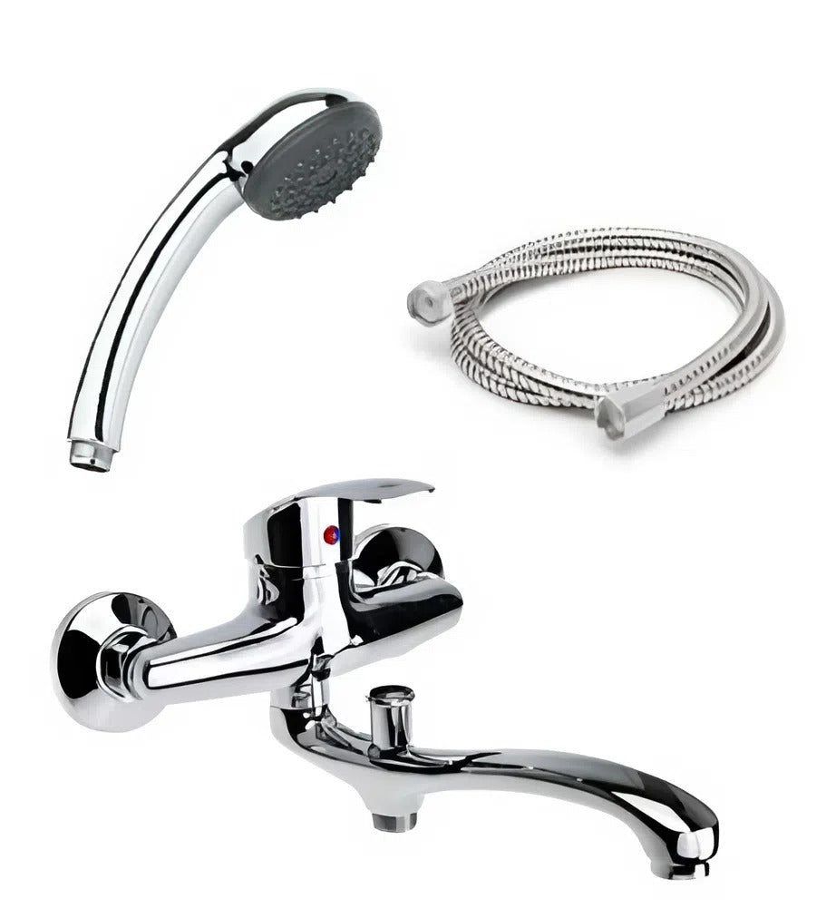 Fürdőszobai kádtöltő csaptelep zuhanyfejjel, fali, egykaros, Q-7