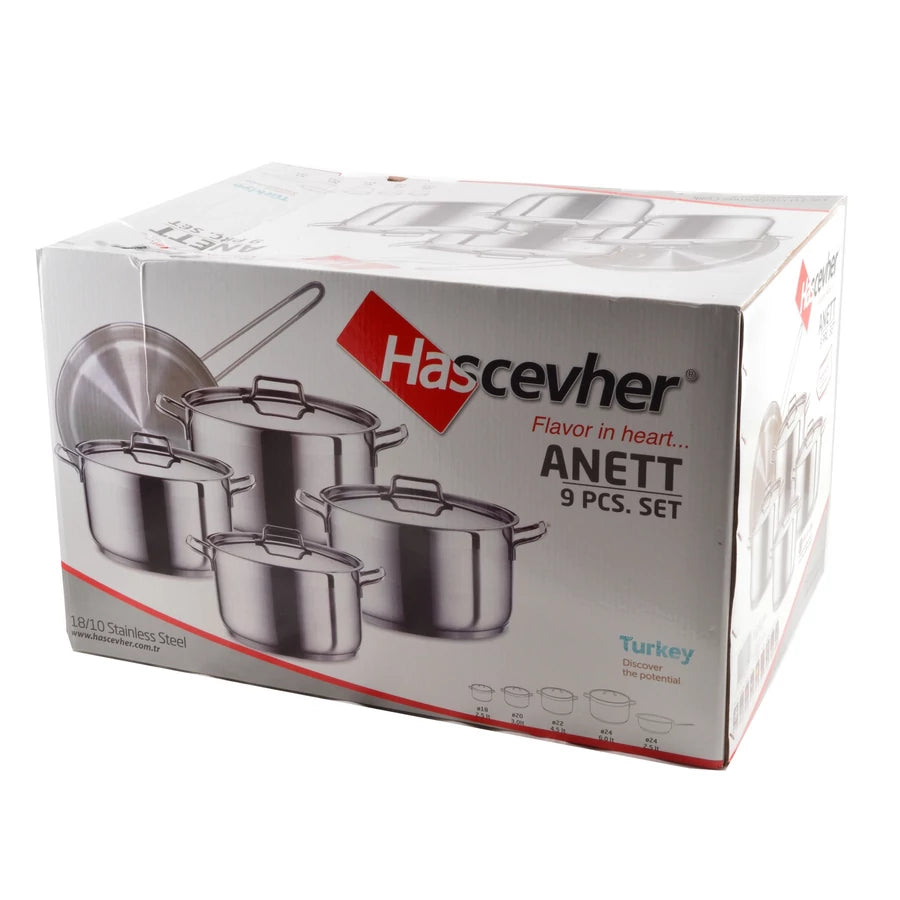 Hascevher Anett rozsdamentes edénykészlet 9 részes, fémfedővel 13477