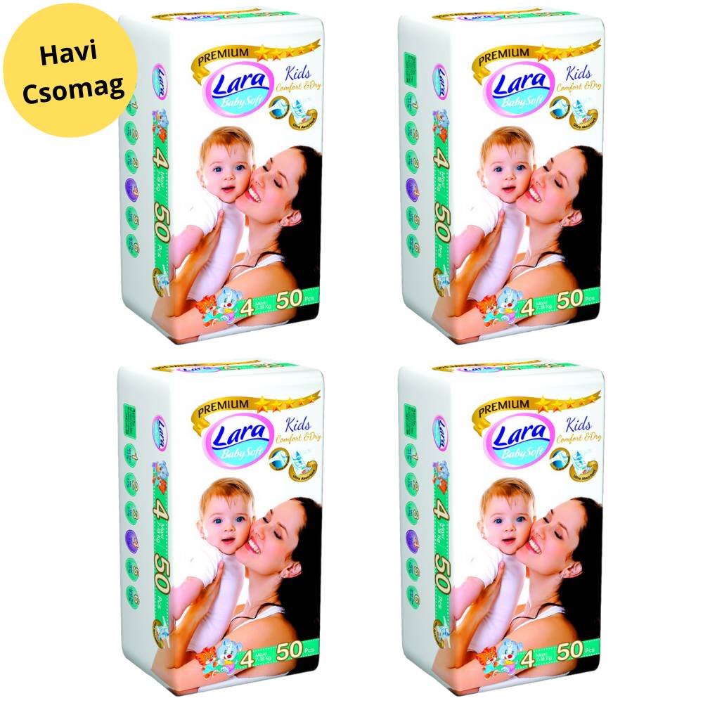 A LARA PELENKA Maxi 4 az 7-18 kg közötti babák számára ideális választás, akik már egyre aktívabbak, de még szükségük van a puha és biztonságos védelemre. A csomag 200 db pelenkát tartalmaz