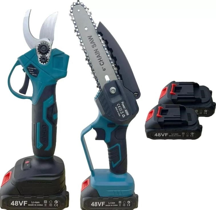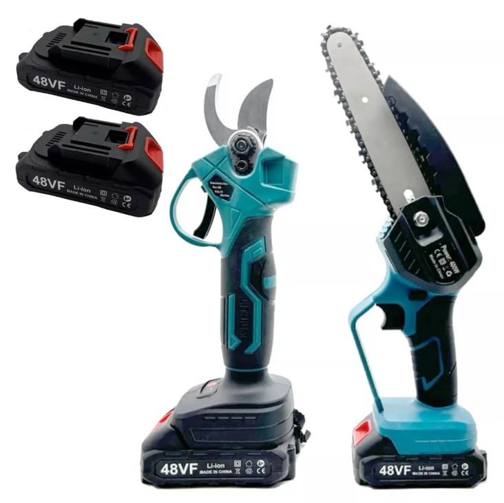 Mini akkumulátoros láncfűrész és ágvágó, 2 db akkumulátorral - 48V