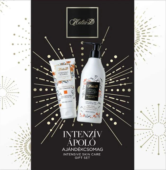Lepje meg szeretteit vagy saját magát ezzel a különleges Helia-D Intenzív Ápoló Ajándékcsomaggal, amely minden bőrtípus számára ideális választás! Ez az exkluzív díszdobozos szett magában foglalja a hidratáló kézkrémet és a testápolót, amelyek a bőr maximális táplálására és regenerálására lettek tervezve.Mit tartalmaz a csomag?