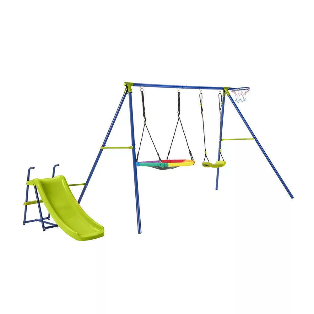 Csúszdázás, fészekhintázás, klasszikus hintázás vagy kosárra dobás – a gyerekek kedvükre váltogathatják a játékformákat, így egyszerre fejlődik az egyensúlyérzékük, koordinációjuk és csapatszellemük.Állítható, gyerekbarát hinták