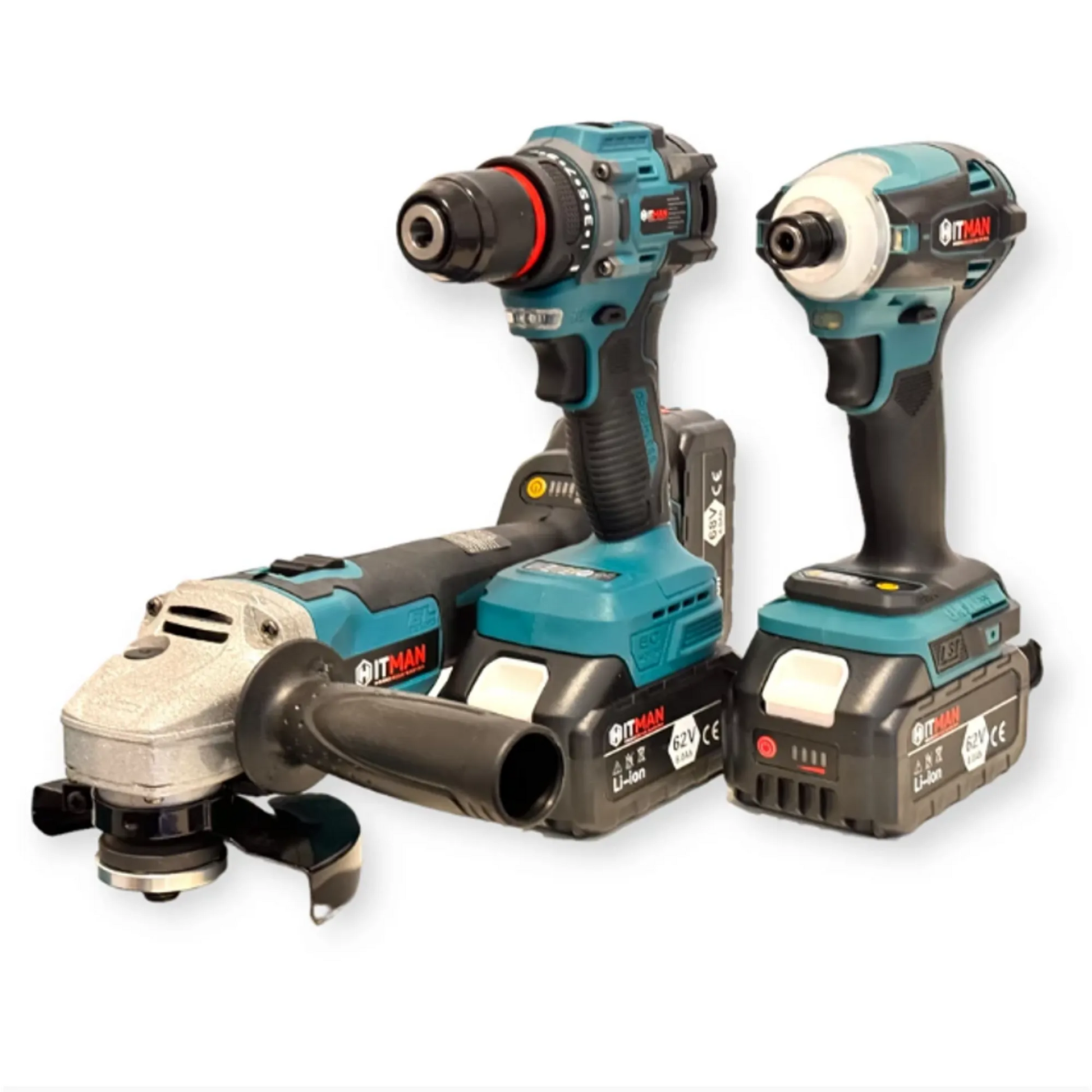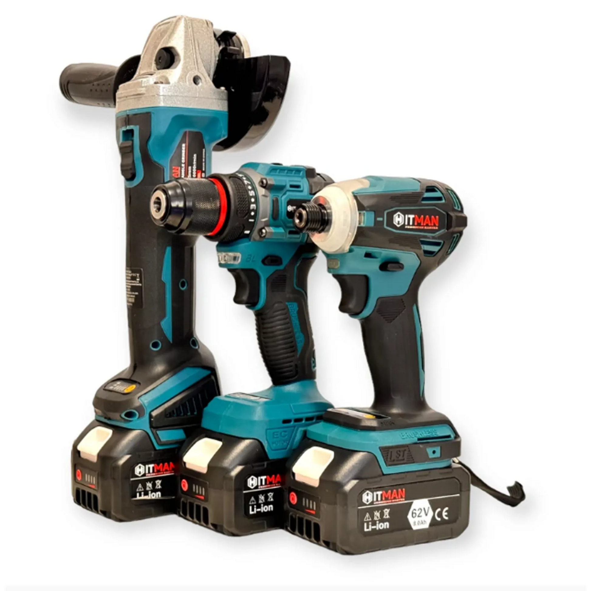 A Hitman HT-BACD-3777LX egy prémium minőségű, 3db-os akkumulátoros szerszámkészlet, amely minden professzionális igényt kielégít. A készlet tartalmaz egy akkumulátoros csavarbehajtót, ütvecsavarozót és sarokcsiszolót, mindegyik 62V-os akkumulátorral működik, amely erős és hosszú élettartamot biztosít.
