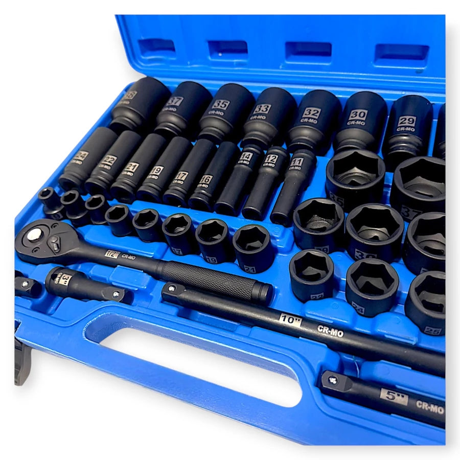 A Hitman HA-2585 erősített 1/2" 6-lapfejű dugókulcs készlet kiváló választás mind a professzionális szerelők, mind a barkácsolók számára, akik megbízható, prémium minőségű szerszámokat keresnek. Ez a 43 részes szett teljes méretválasztékot kínál, beleértve a hosszú és rövid dugókulcsokat is, így minden feladatnál kéznél lesz a megfelelő méret. A készletben található hosszú dugókulcsok 9 mm-től egészen 38 mm-ig terjednek, míg a rövid változatok ugyanezen méretskálát fedik le, biztosítva a sokoldalú felhasználhatóságot. A Hitman HA-2585 tartalmaz továbbá egy strapabíró 1/2" racsnis hajtószárat, három különböző hosszúságú hosszabbító szárat (3", 5", 10"), valamint egy 1/2" csuklós adaptert, amely lehetővé teszi a nehezen hozzáférhető helyek elérését. A készlet minden eleme extra erősített, fekete bevonatú króm-vanádium acélból készült, amely nemcsak a hosszú élettartamot, hanem a korrózióval szembeni ellenállást is garantálja. A praktikus, zárható, kék műanyag koffer biztonságosan tárolja és rendszerezi az összes elemet, így a szerszámok mindig könnyen elérhetők és szállíthatók. A Hitman HA-2585 szett a minőség és funkcionalitás tökéletes kombinációja, ideális autószerelő műhelyekbe, ipari karbantartásokhoz, de akár otthoni garázsba is, ahol fontos a megbízható és sokoldalú szerszámhasználat.
