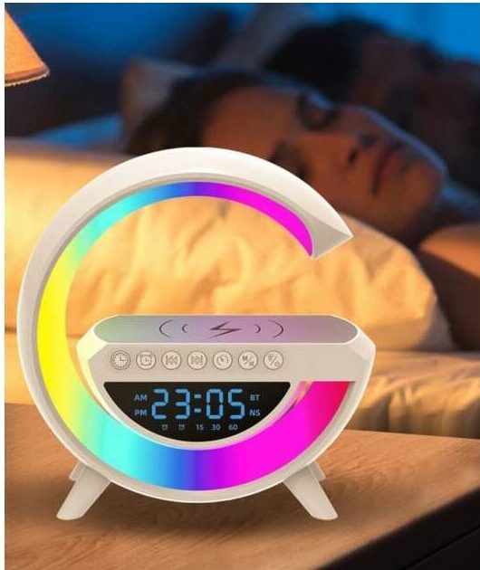 Intelligens asztali RGBW Lámpa, Hangszóró, 15W Gyorstöltő, Ébresztőóra, Fehér