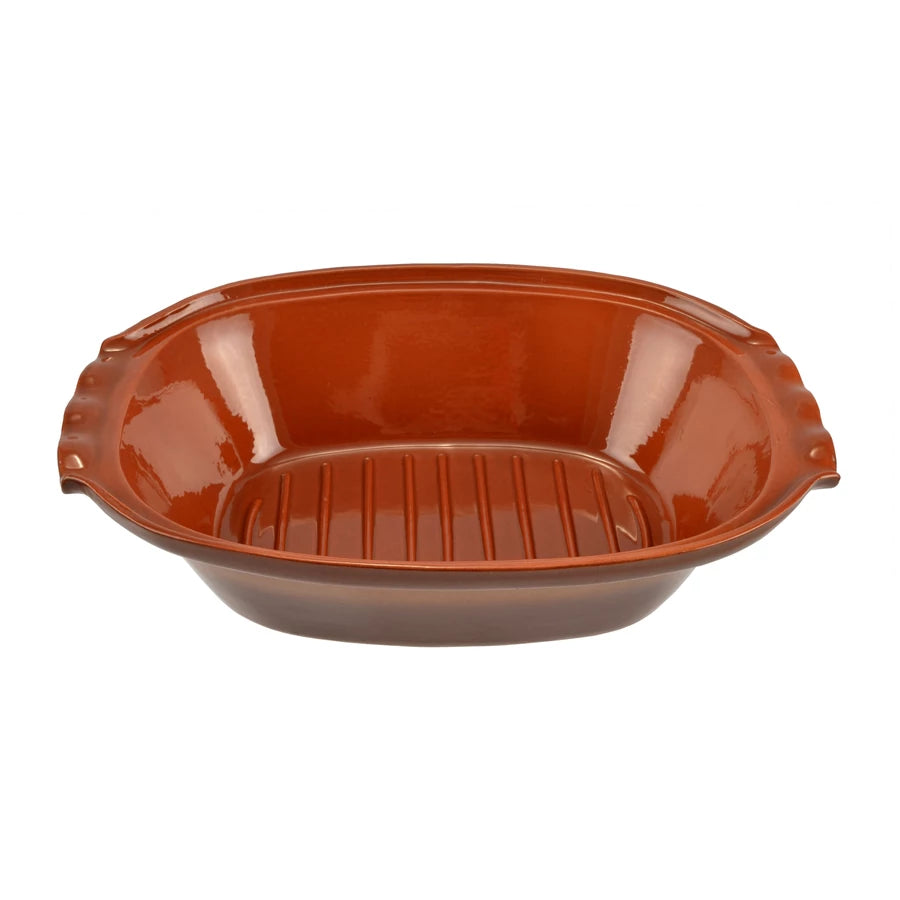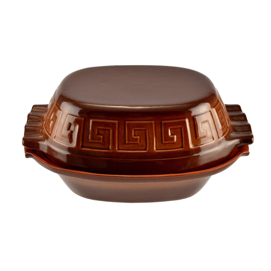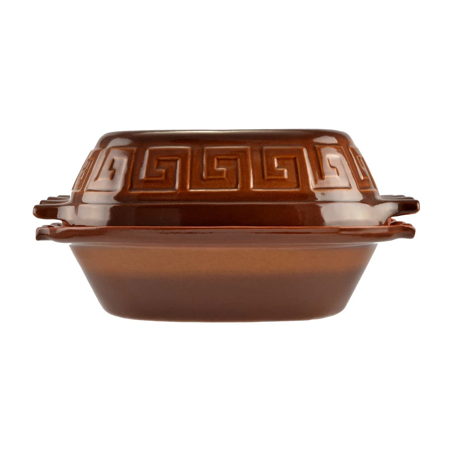 Használata: az edényt első alkalommal 30 percig, további sütések alkalmával 15-60 percig hideg vízben áztassa. Az edényt mindig hideg sütőbe, rácsra tegye, és fokozatosan melegítse a kívánt sütési hőmérsékletre. A forró edényt ne hűtse hirtelen, fa deszkára, hőálló alátétre vagy száraz ruhára helyezze!
