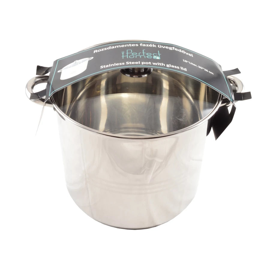 Perfect Home Rozsdamentes fazék 30cm + üvegfedő 18 literes 13236