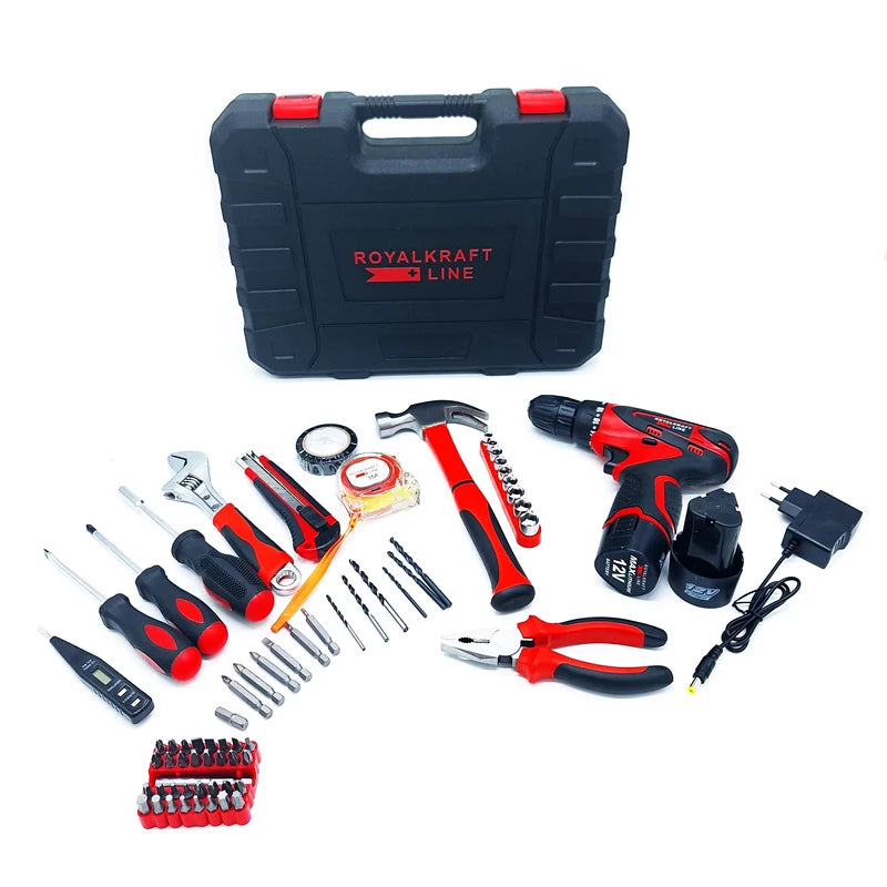 A RoyalKraft 68 részes szerszámkészlettel mostantól a kezedben tarthatod a kiváló minőségű szerszámok erejét és sokoldalúságát. Ez a készlet minden szükséges eszközt tartalmaz, hogy könnyedén elvégezd a ház körüli munkákat, vagy akár professzionális projekteken dolgozz. A készlet középpontjában egy erőteljes akkus csavarbehajtó áll, amely fekete színű kofferben található. Az akkus csavarbehajtó kiváló teljesítményt nyújt, és lehetővé teszi a gyors és hatékony csavarozást és furatok készítését. A könnyű és kompakt kialakításnak köszönhetően könnyen hordozható, így bárhol használhatod. A RoyalKraft 68 részes szerszámkészlet tartalmaz mindenféle szükséges eszközt, például különböző méretű és típusú bitfejeketket, csavarhúzókat, fúrókat, fogókat és még sok mást. A fekete koffer stílusos és praktikus tárolási lehetőséget biztosít a szerszámoknak, így mindig rendezetten és könnyen hozzáférhetően tarthatod őket. Ezzel a készlettel garantáltan minden szükséges eszközzel rendelkezel ahhoz, hogy sikeresen kezdd meg a munkát.