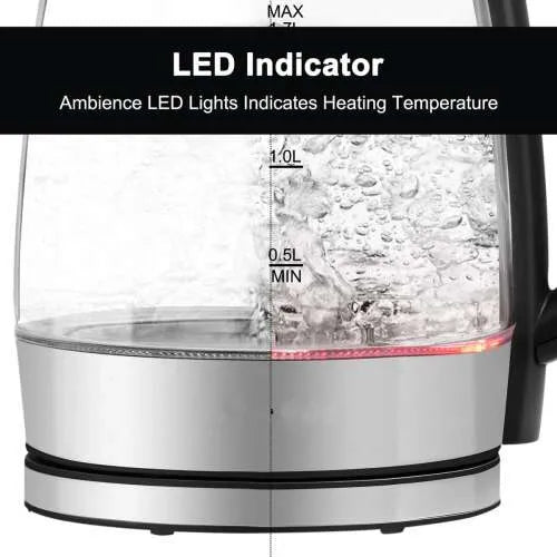 Royalty Line® GWK11703 Vízforraló – Üveg, Kék LED világítással, 1,7 L, 2000 W