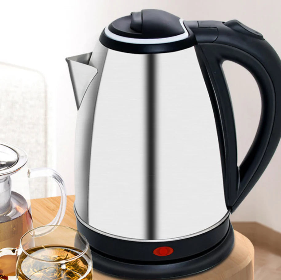 Elektromos vízforraló 2L – 1500W, rozsdamentes acél talp rejtett fűtőelemmel, 360°-os forgatással, automatikus kikapcsolás és túlmelegedés elleni védelemmel