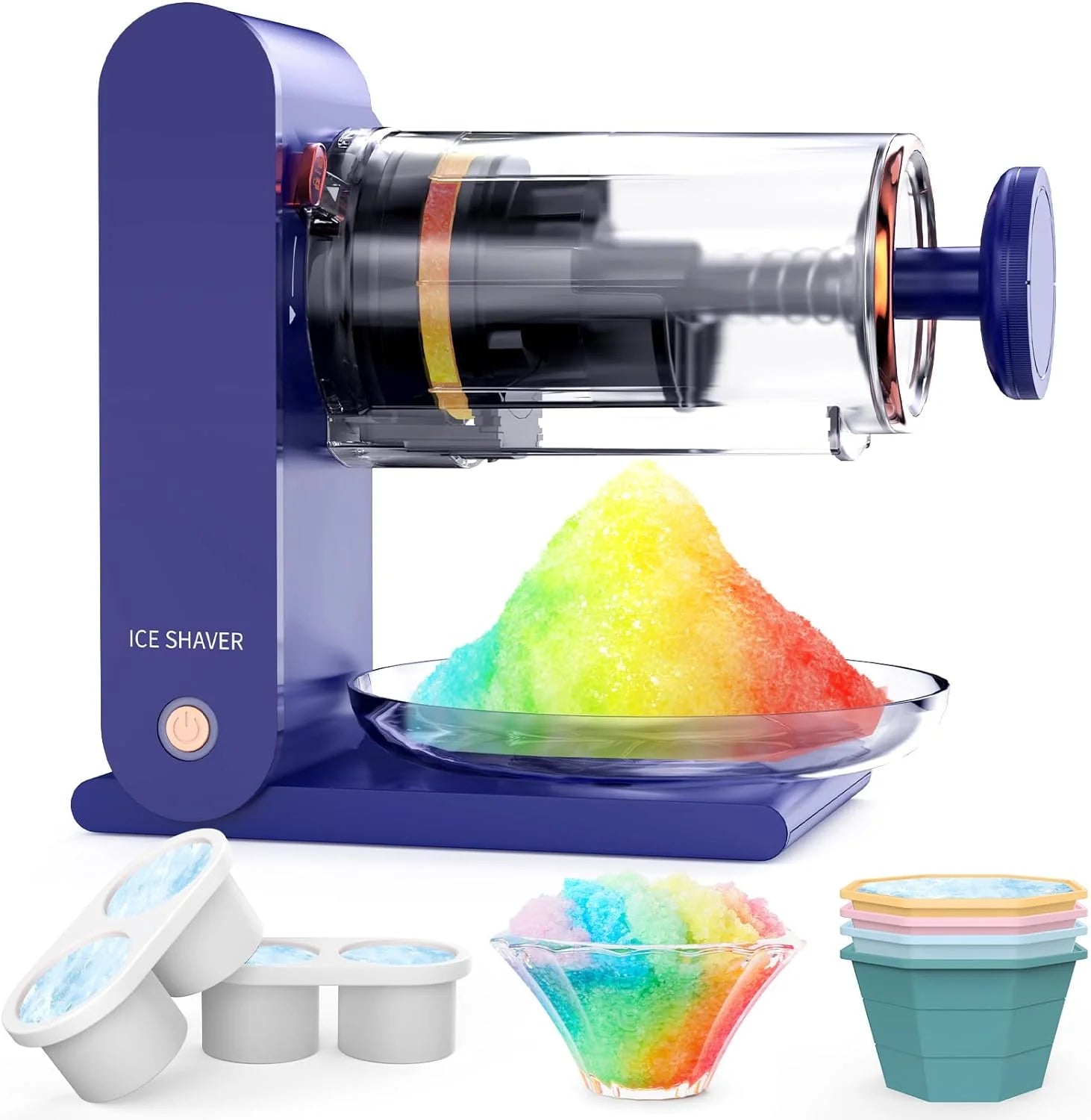 Egyszerű kezelés : Rögzítse a jégvödröt a fogantyú teljes kihúzásával és az óramutató járásával megegyező irányba forgatásával. Vegye ki a jeget a formából, helyezze a vödörbe, és kapcsolja be a gépet a bekapcsológomb két másodpercig tartó lenyomásával, majd egyszeri megnyomásával. Élvezze a nagy tálca reszelt jeget körülbelül egy perc alatt.