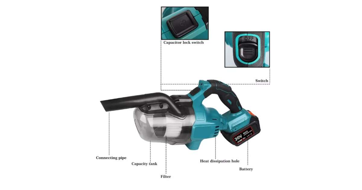 20 V Li-Ion akkumulátor Száraz porszívó Tartály kapacitása: max. 0.5 lA csomag tartalma: