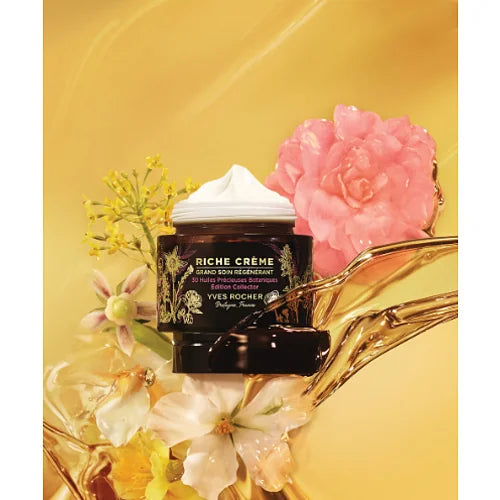 Az Yves Rocher szakértői 30 ritka olajat választottak ki jelentős öregedésgátló hatása miatt. Ma a Riche Créme termékek összetételét ráadásul 1000 rózsa olajával dúsítják, ami segíti a bőr regenerálódását és táplálását. A damaszcén rózsából származó rózsaszín viasz ritka, és hosszú betakarítással és precíz extrakciós eljárással nyerik. Egy kilogramm rózsaszín viaszhoz egy tonna ilyen virágra van szükség. A jojobaolajjal együtt a Riche Créme termékcsalád egyik legjelentősebb összetevőjét alkotja.