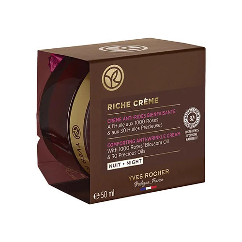 Az Yves Rocher szakértői 30 ritka olajat választottak ki a bőröregedés elleni küzdelemben kifejtett jelentős hatásuk miatt. Ma a Riche Créme termékek összetételét ezenkívül 1000 rózsa olajával gazdagítják, ami elősegíti a bőr regenerálódását és táplálását. A damaszcénrózsából származó rózsaszín viasz ritka, és hosszú betakarítással és pontos kivonási eljárással nyerik. Egy kilogramm rózsaszín viaszhoz egy tonna virág szükséges. A jojobaolajjal együtt a Riche Créme termékcsalád egyik legjelentősebb alkotóeleme.