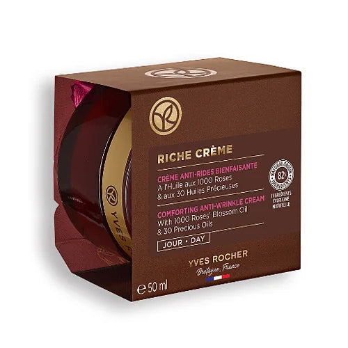 Az Yves Rocher szakértői 30 ritka olajat választottak ki jelentős öregedésgátló hatása miatt. Ma a Riche Créme termékek összetételét ráadásul 1000 rózsa olajával dúsítják, ami segíti a bőr regenerálódását és táplálását. A damaszcén rózsából származó rózsaszín viasz ritka, és hosszú betakarítással és precíz extrakciós eljárással nyerik. Egy kilogramm rózsaszín viaszhoz egy tonna ilyen virágra van szükség. A jojobaolajjal együtt a Riche Créme termékcsalád egyik legjelentősebb összetevőjét alkotja.